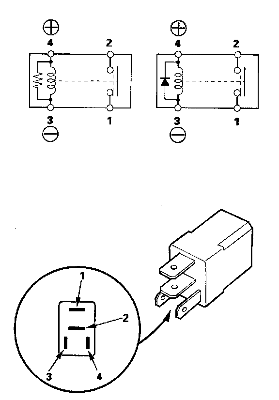 - There should be continuity between the No. 1 and No. 2 terminals when battery positive terminal is connected to the No. 4 terminal, and battery negative terminal is connected to the No. 3 terminal.
