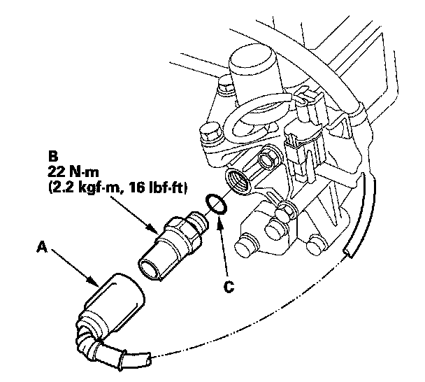 3. Install the parts in the reverse order of removal with a new O-ring (C).