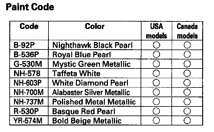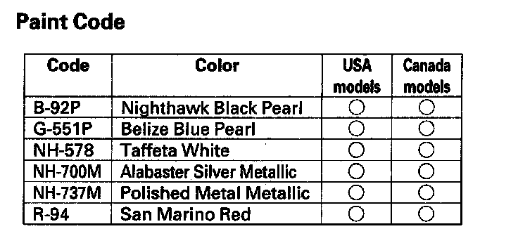 Paint Code (4-door Model):