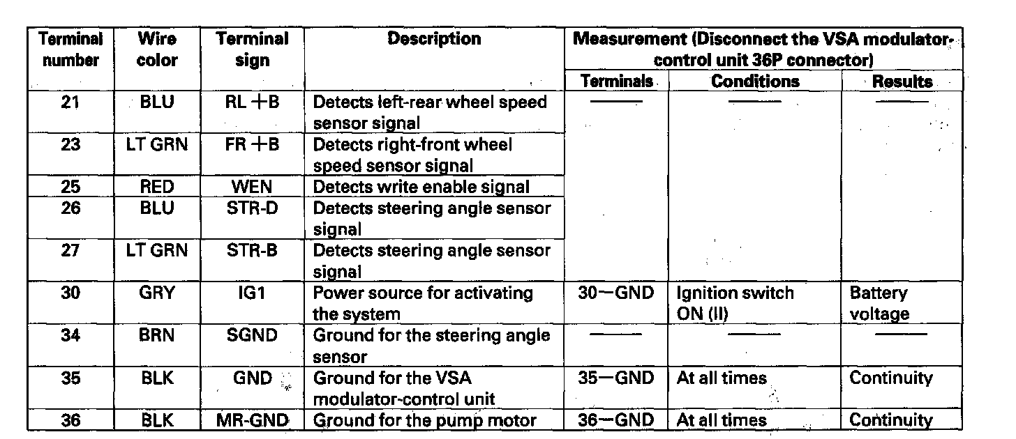 VSA Modulator-Control Unit Inputs and Outputs for 36P Connector (Part 1):