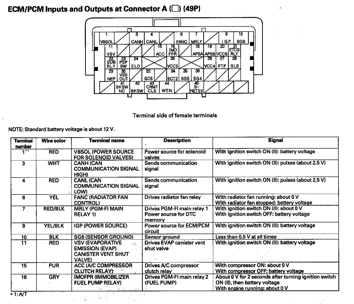 ECM/PCM Inputs And Outputs At Connector A (49P) (Part 3):
