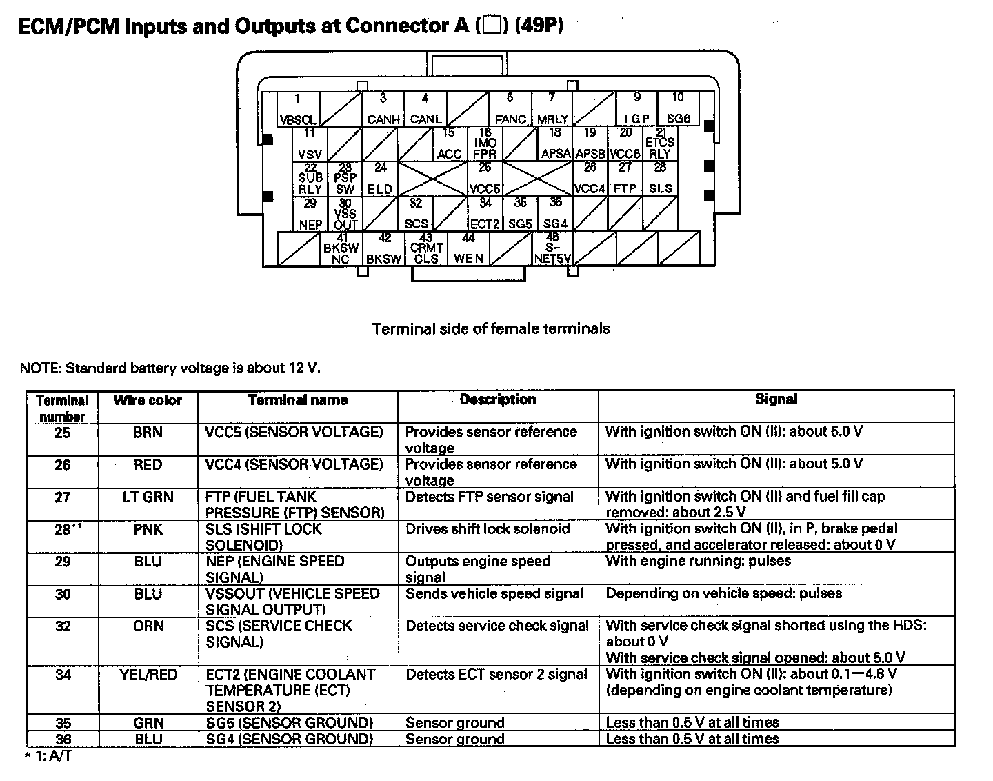 ECM/PCM Inputs And Outputs At Connector A (49P) (Part 1):