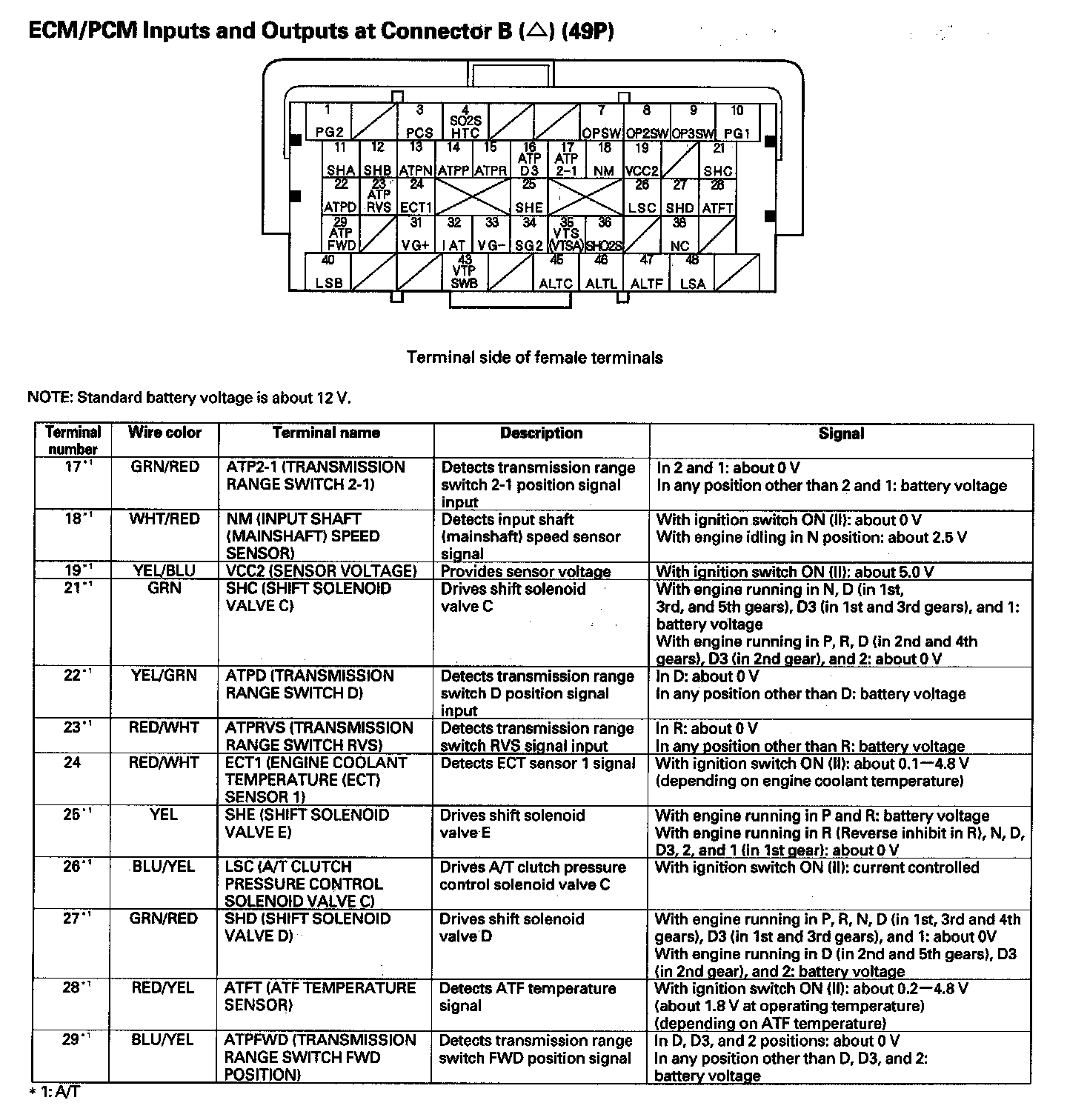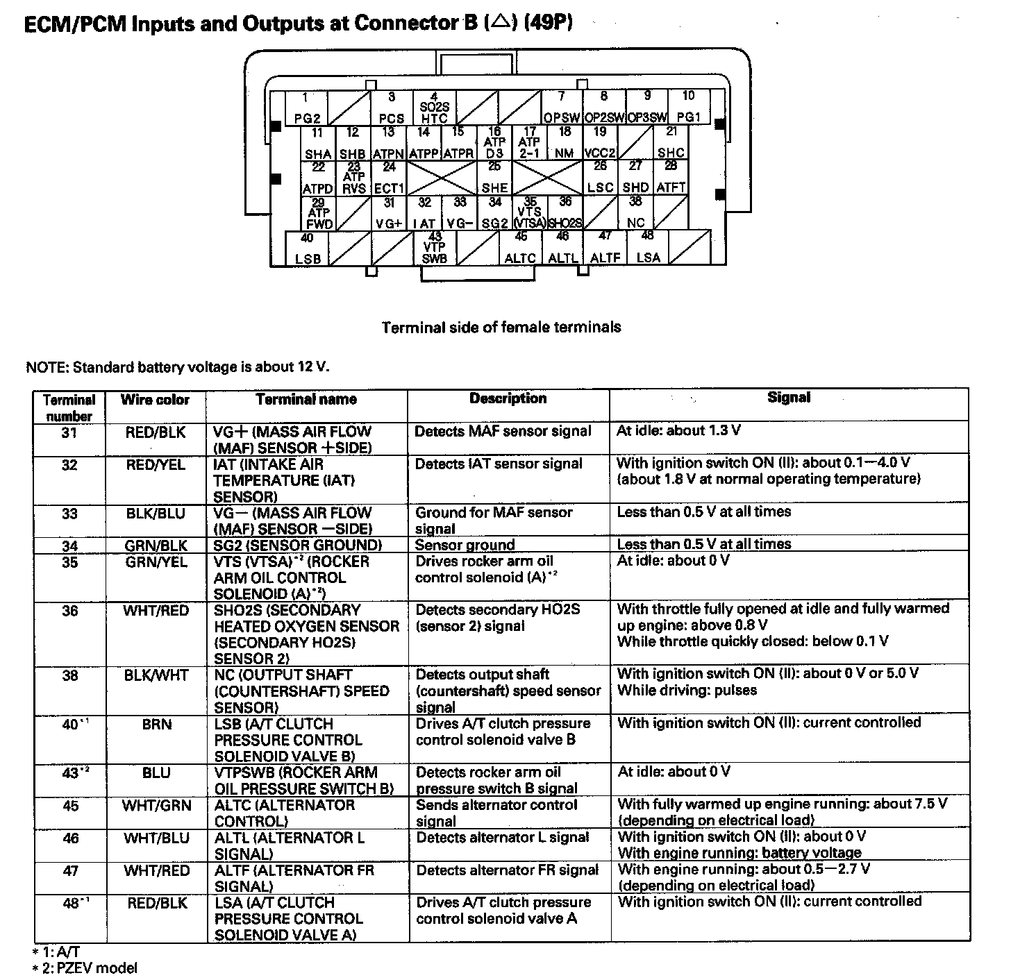 ECM/PCM Inputs And Outputs At Connector B (49P) (Part 1):