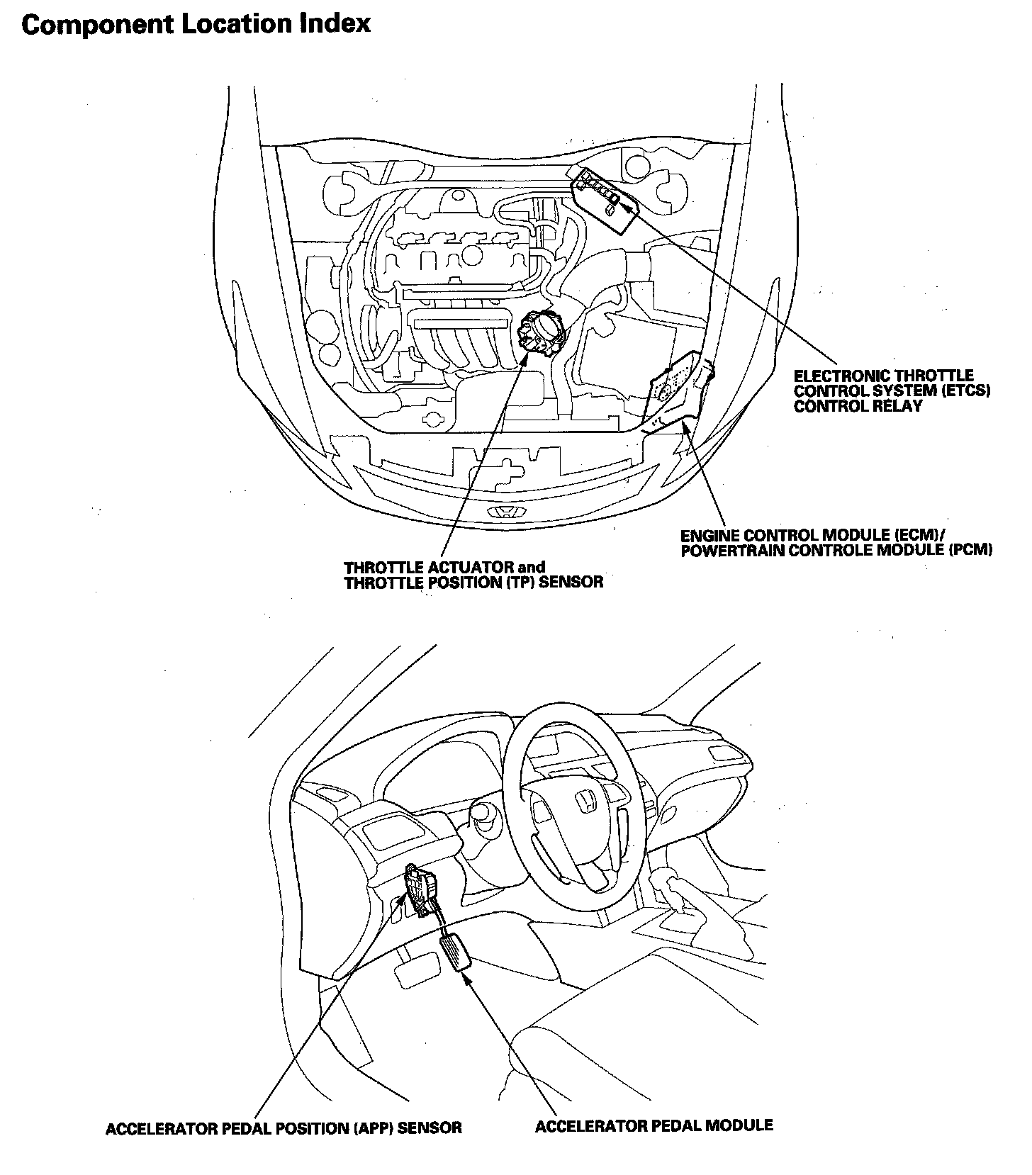 Electronic Throttle Control System Component Location Index: