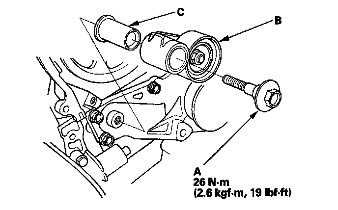 Timing ComponentsTiming Belt Tensioner Torque 26 N-m (2.6 kgf-m, 19 lbf-ft)
