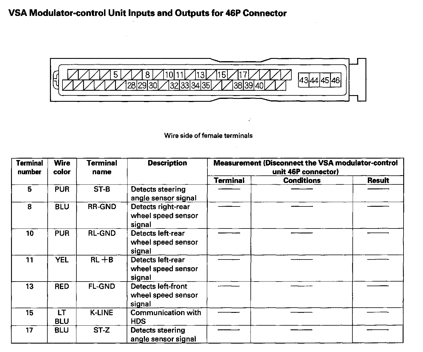 VSA Modulator-control Unit Inputs and Outputs for 46P Connector (Part 1):