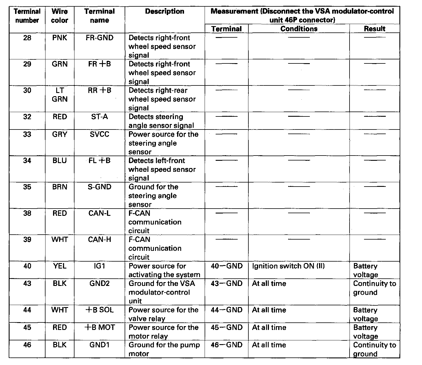 VSA Modulator-control Unit Inputs and Outputs for 46P Connector (Part 2):