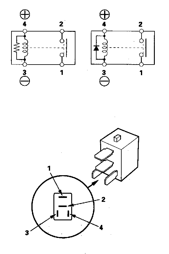 - There should be continuity between the No. 1 and No. 2 terminals when battery positive terminal is connected to the No. 4 terminal, and battery negative terminal is connected to the No. 3 terminal.