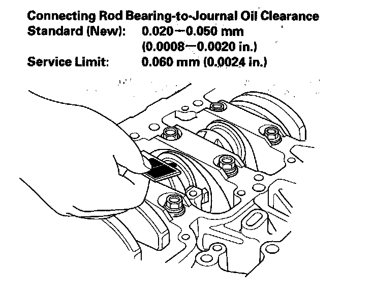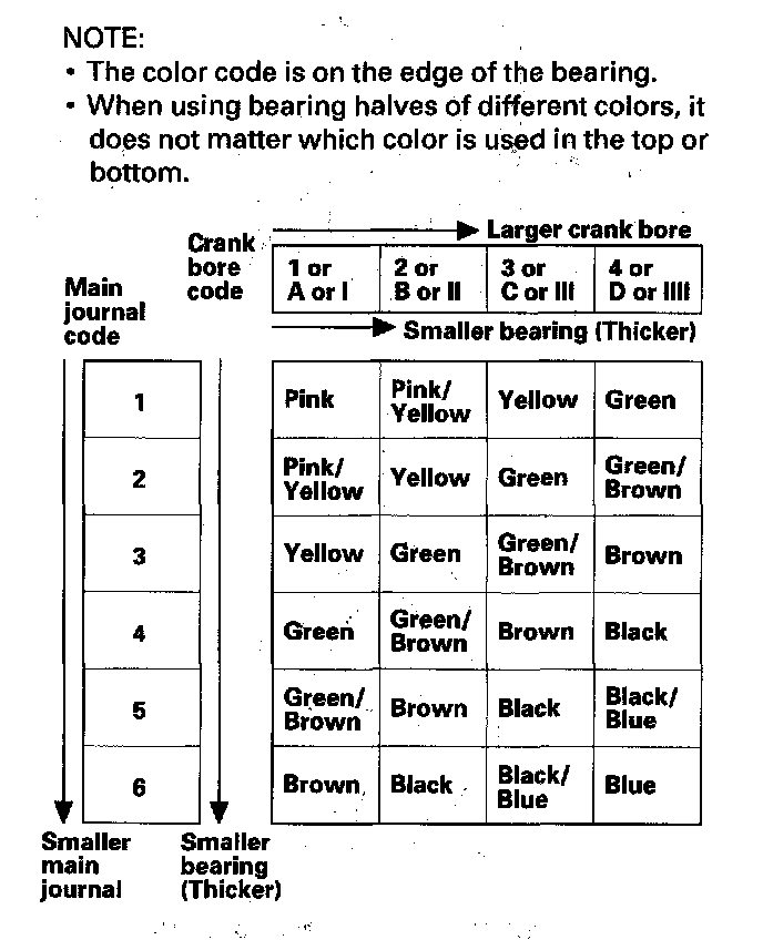 Each rod has a tolerance range from 0 to 0.024 mm (0.0009 in.), in 0.006 mm (0.0002 in.) increments, depending on the size of its big end bore. It's then stamped with a number or bar (1, 2, 3, or 4/I, II, III, or IIII) indicating the range. You may find any combination of numbers and bars in any engine. (Half the number or bar is stamped on the bearing cap, the other half is on the rod.)