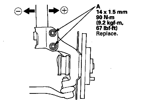 10. Replace the damper pinch bolts with the adjusting bolts (A), and adjust the camber angle.