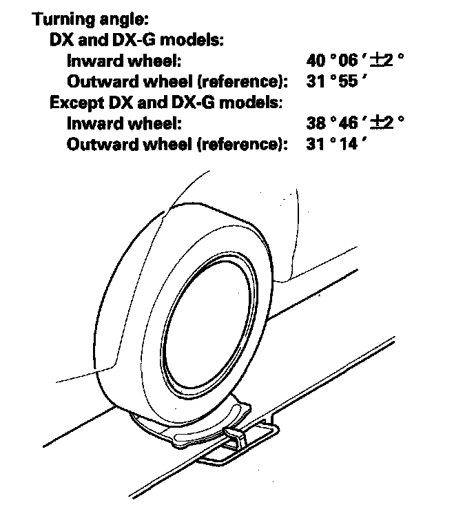 2. If the turning angle is not within the specifications, check for bent or damaged suspension components.