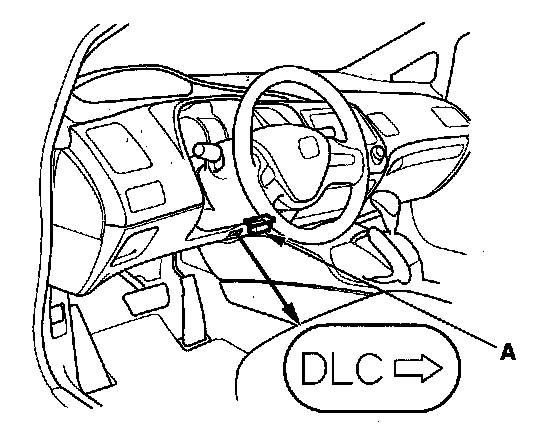 2. Connect the HDS to the data link connector (DLC) (A) located under the driver's side of the dashboard.