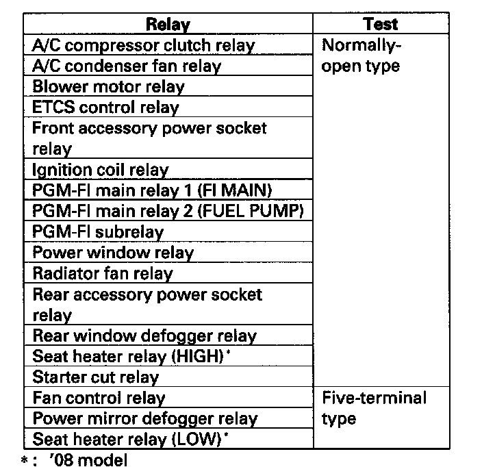 Power Relay TestUse this chart to identify the type of relay, then do the test listed for it.