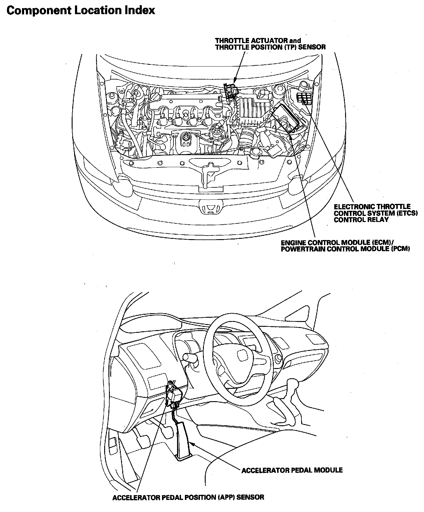 Electronic Throttle Control System Component Location Index:
