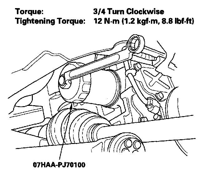 4. After the rubber seal seats, torque the oil filter clockwise with the oil filter wrench.
