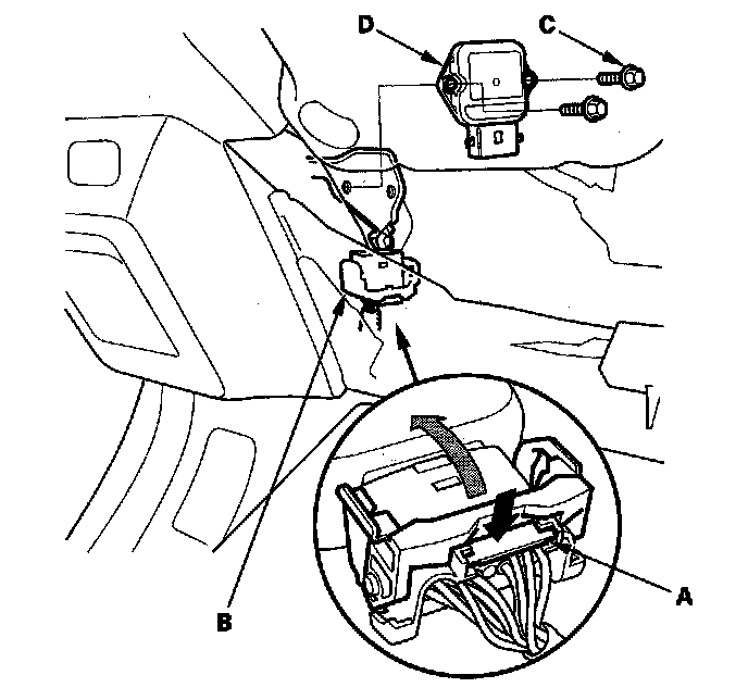 2. Remove the bolts (C), and the throttle actuator control module (D).