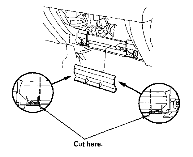 11. Cut the plastic cross brace in the glove box opening with diagonal cutters in the area shown, and discard it.