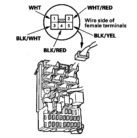 3. Disconnect connector A (5P) from the under-dash fuse/relay box.
