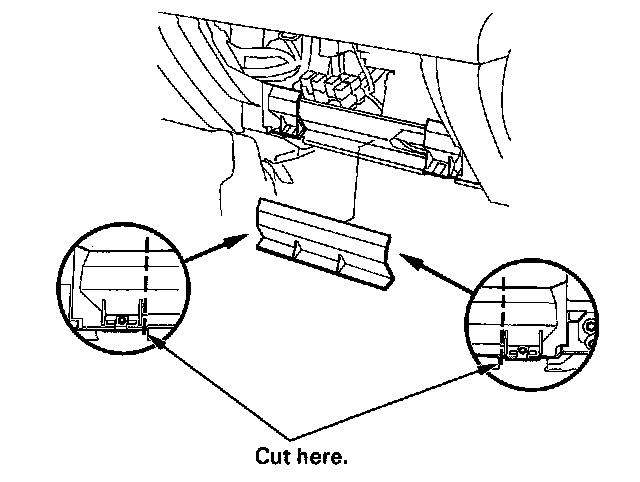 9. Cut the plastic cross brace in the glove box opening with diagonal cutters in the area shown, and discard it.
