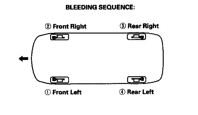 NOTE: Bleed the calipers or the wheel cylinders in the sequence shown.