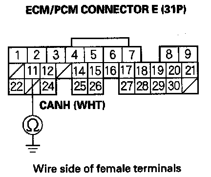 33. Check for continuity between ECM/PCM connector terminal E11 and body ground.