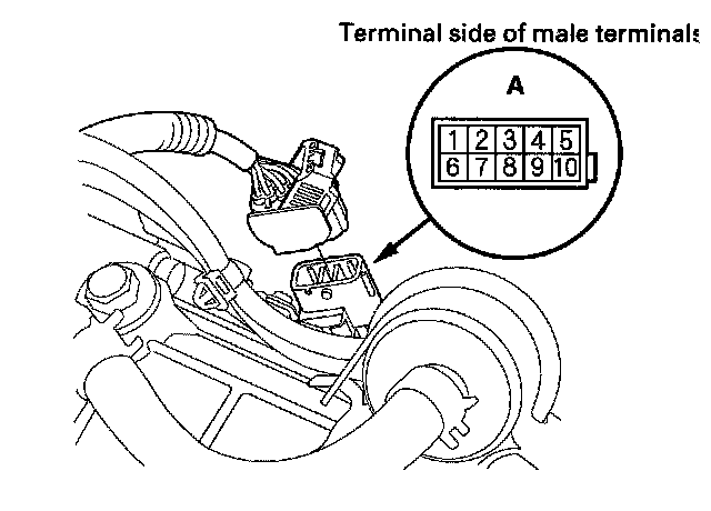 3. Check for continuity between terminals at the harness connector. There should be continuity between the terminals indicated in the following table for each switch position.