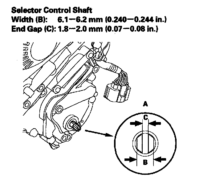 11. If the measurement of the selector control shaft end is within the standard, replace the transmission range switch. If the measurement is out of the standard, repair the selector control shaft end, and recheck the transmission range switch continuity.