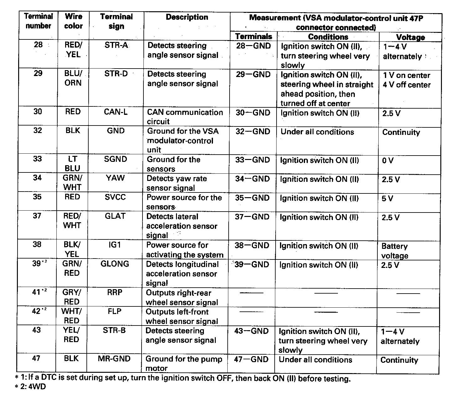 VSA Modulator-Control Unit Inputs and Outputs for 47P Connector (Part 1):