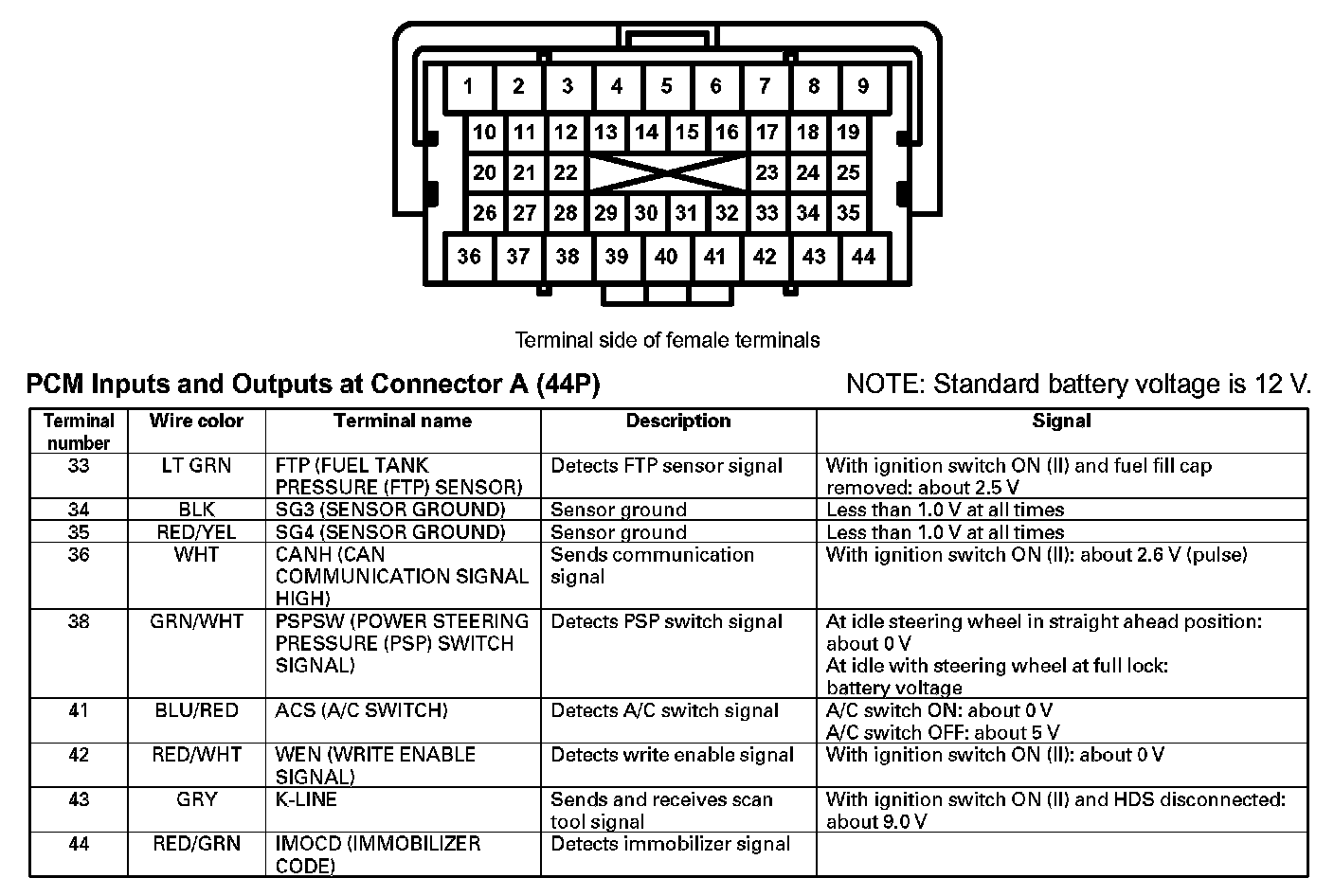 PCM Inputs And Outputs At Connector A (44P) (Part 4):