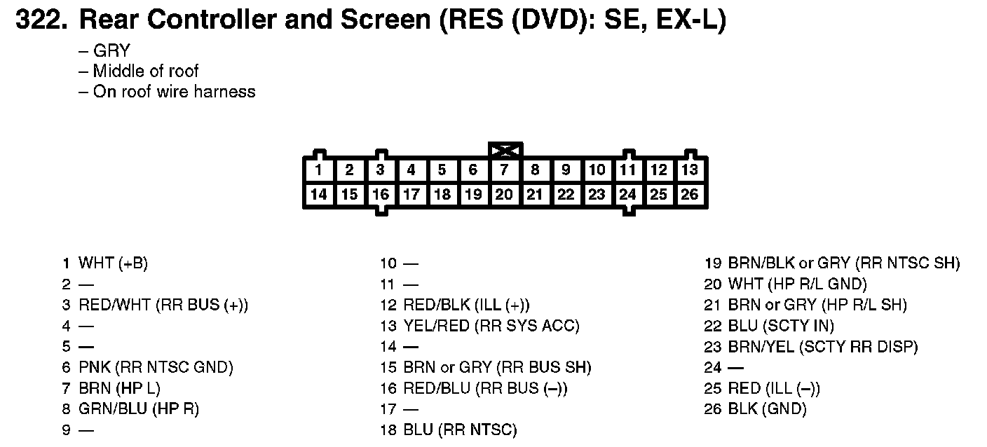 322. Rear Controller And Screen (RES (DVD): SE, EX-L):