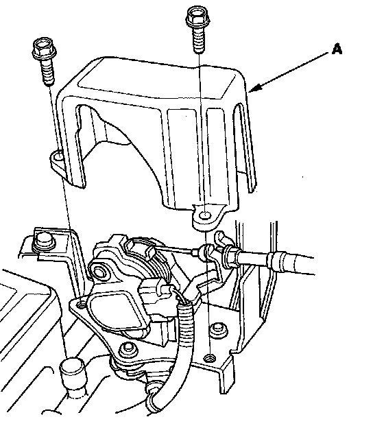 1. Remove the bolts and the throttle cable cover (A).