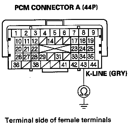NO - Repair open in the wire between DLC terminal No. 7 and the PCM (A43). After repairing the wire, check for a DTC with the HDS, and go to the DTC troubleshooting.