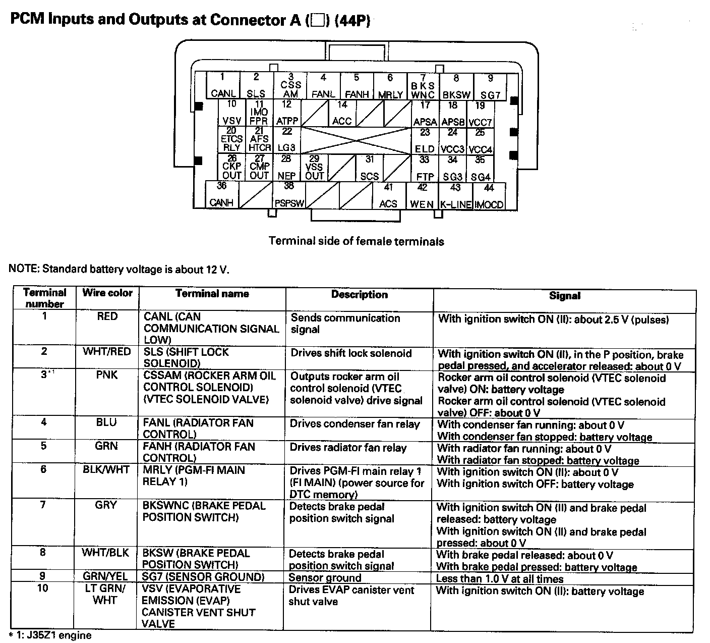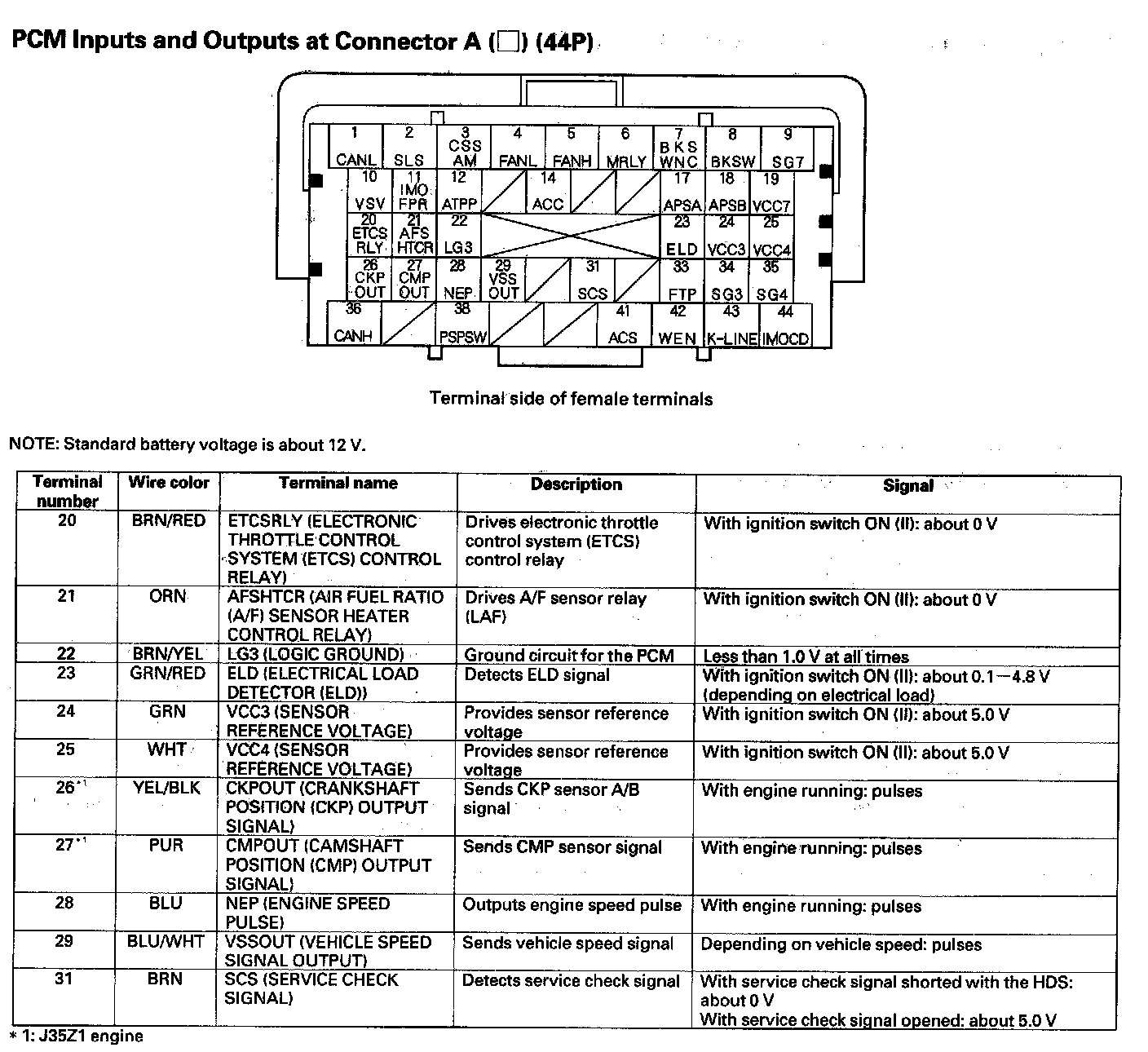 PCM Inputs And Outputs At Connector A (44P) Part 1: