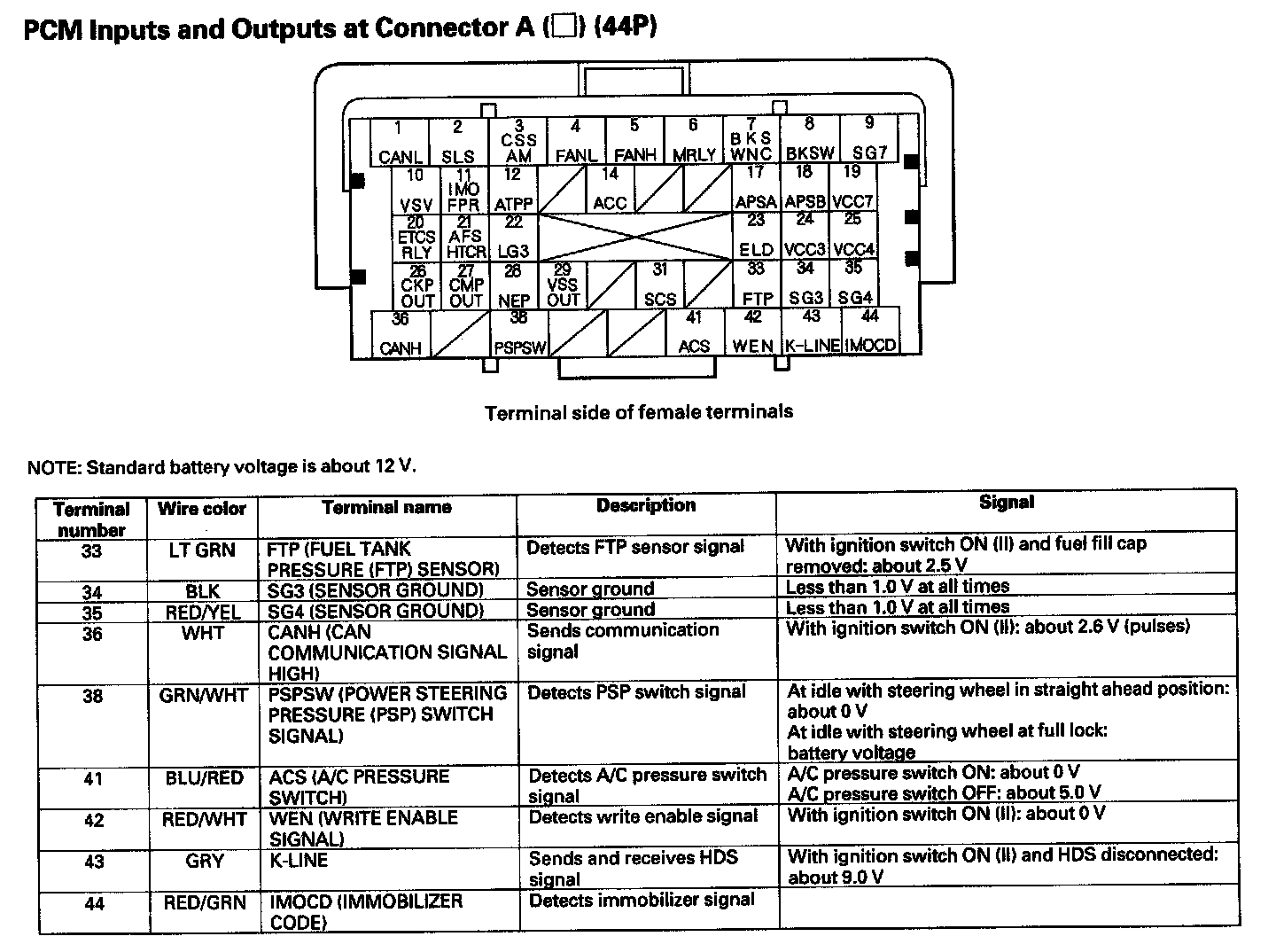 PCM Inputs And Outputs At Connector A (44P) Part 4: