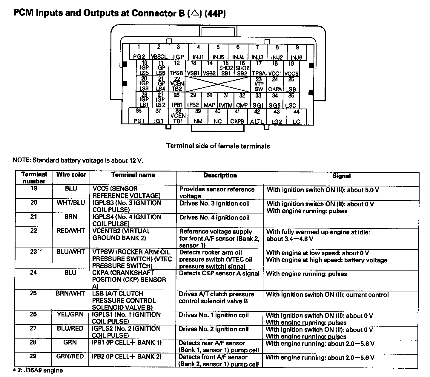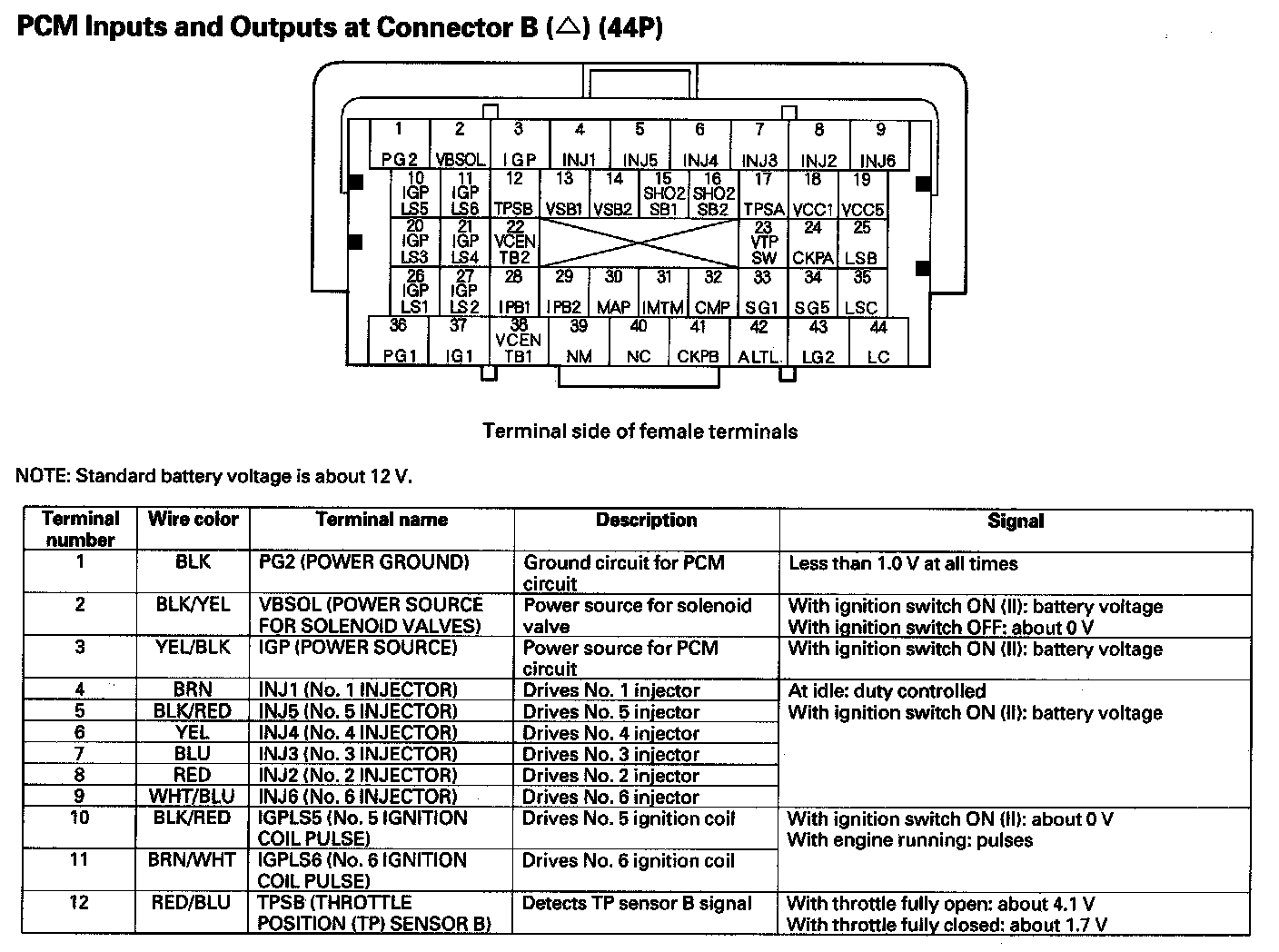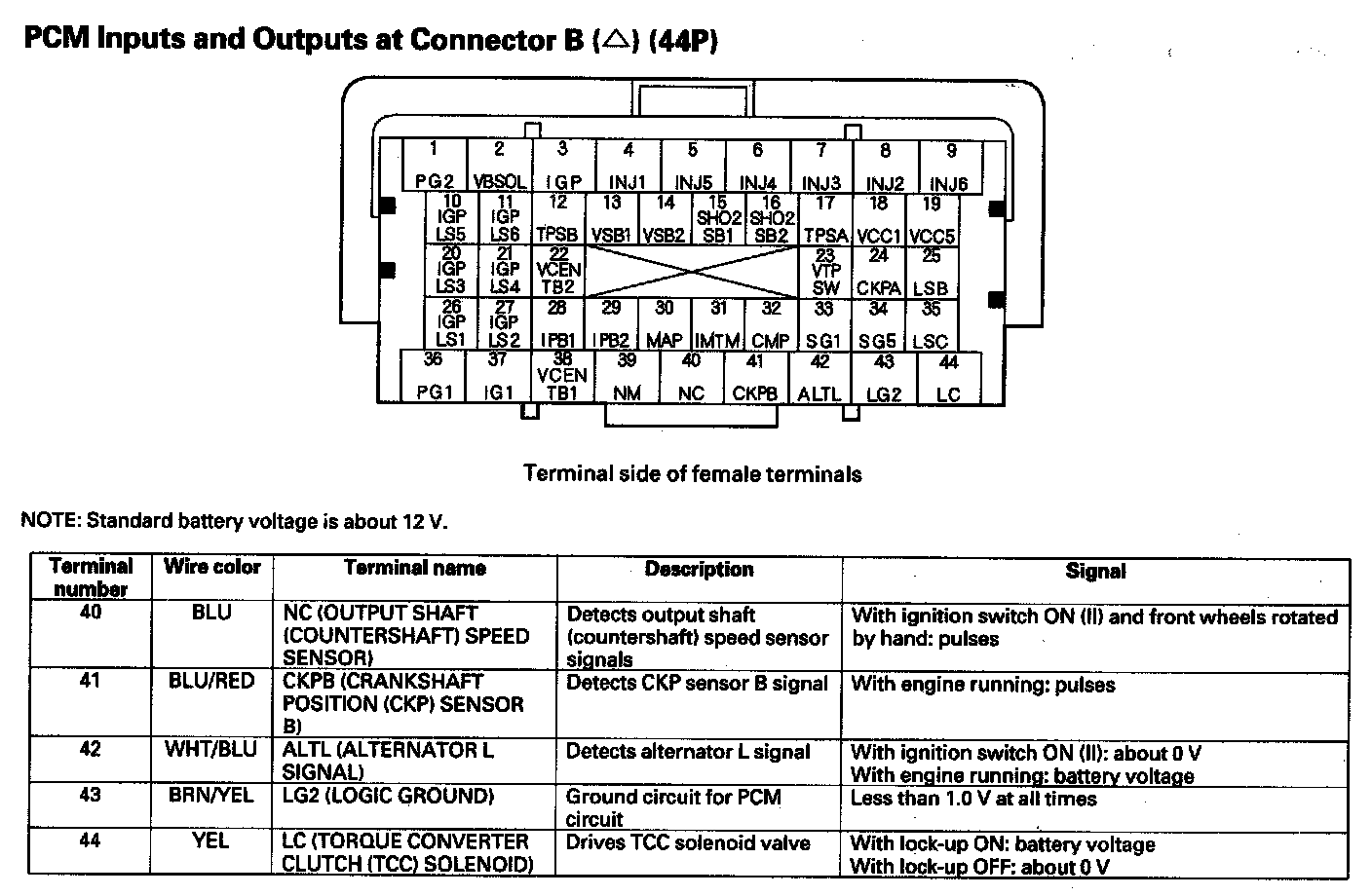 PCM Inputs And Outputs At Connector B (44P) Part 4: