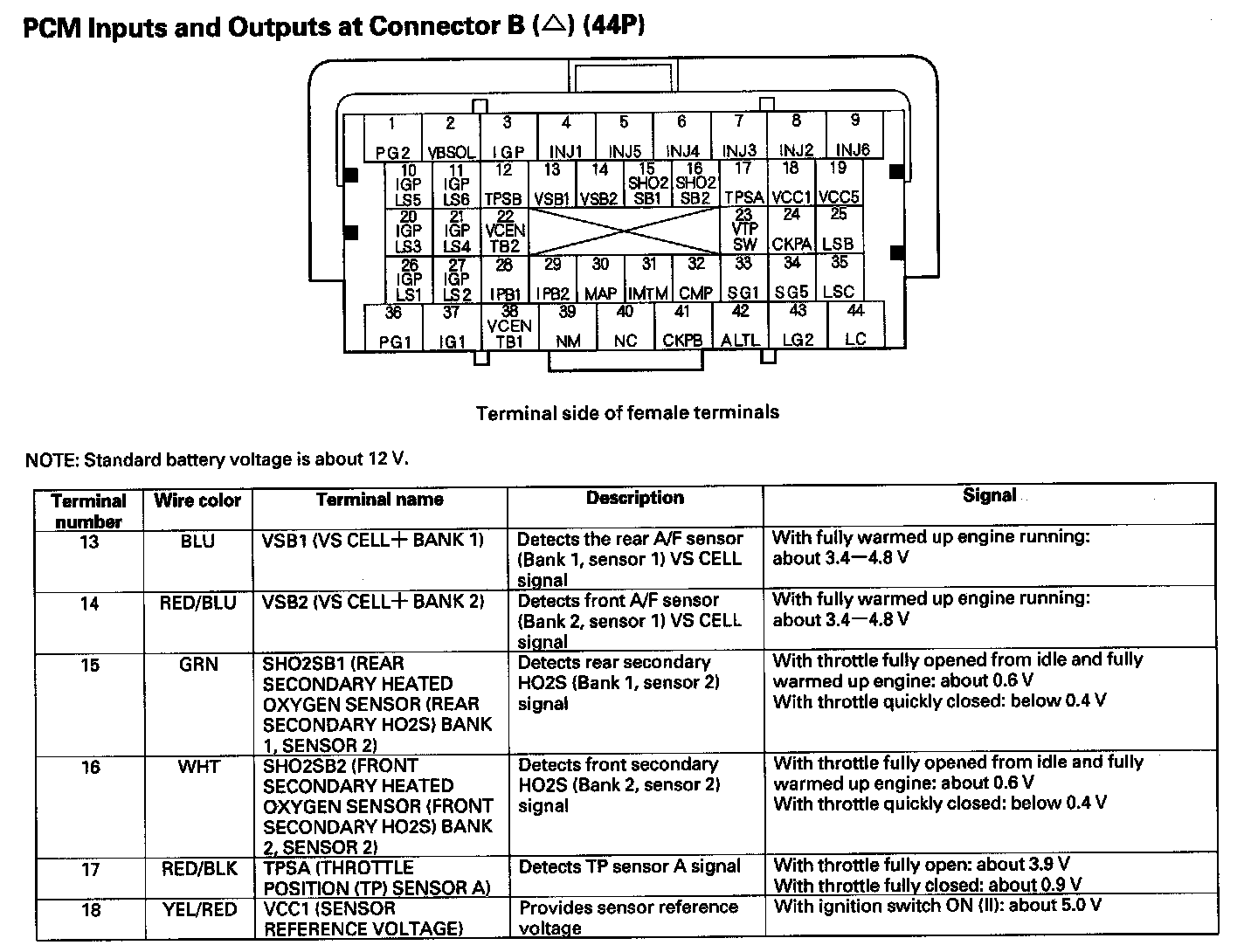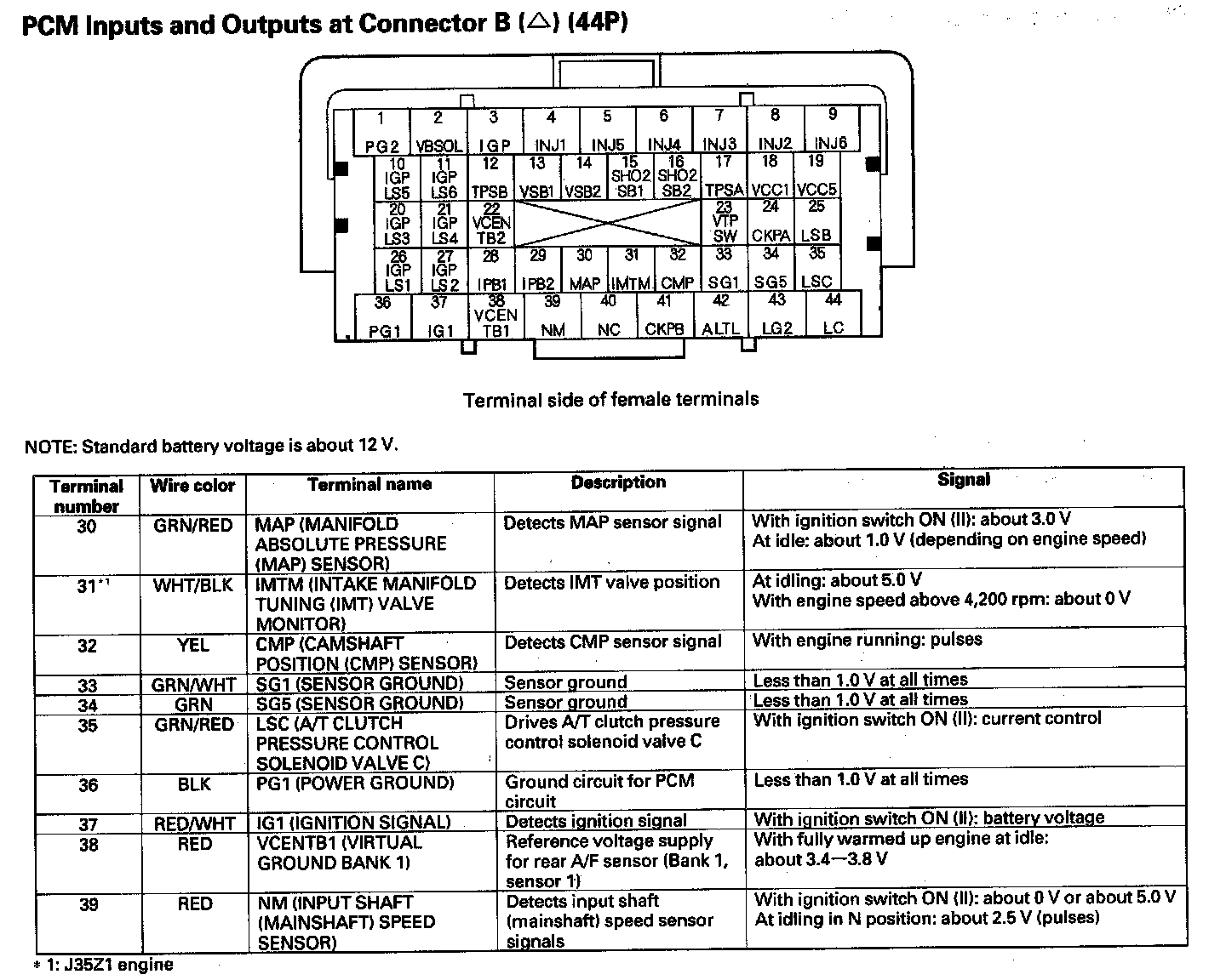 PCM Inputs And Outputs At Connector B (44P) Part 1: