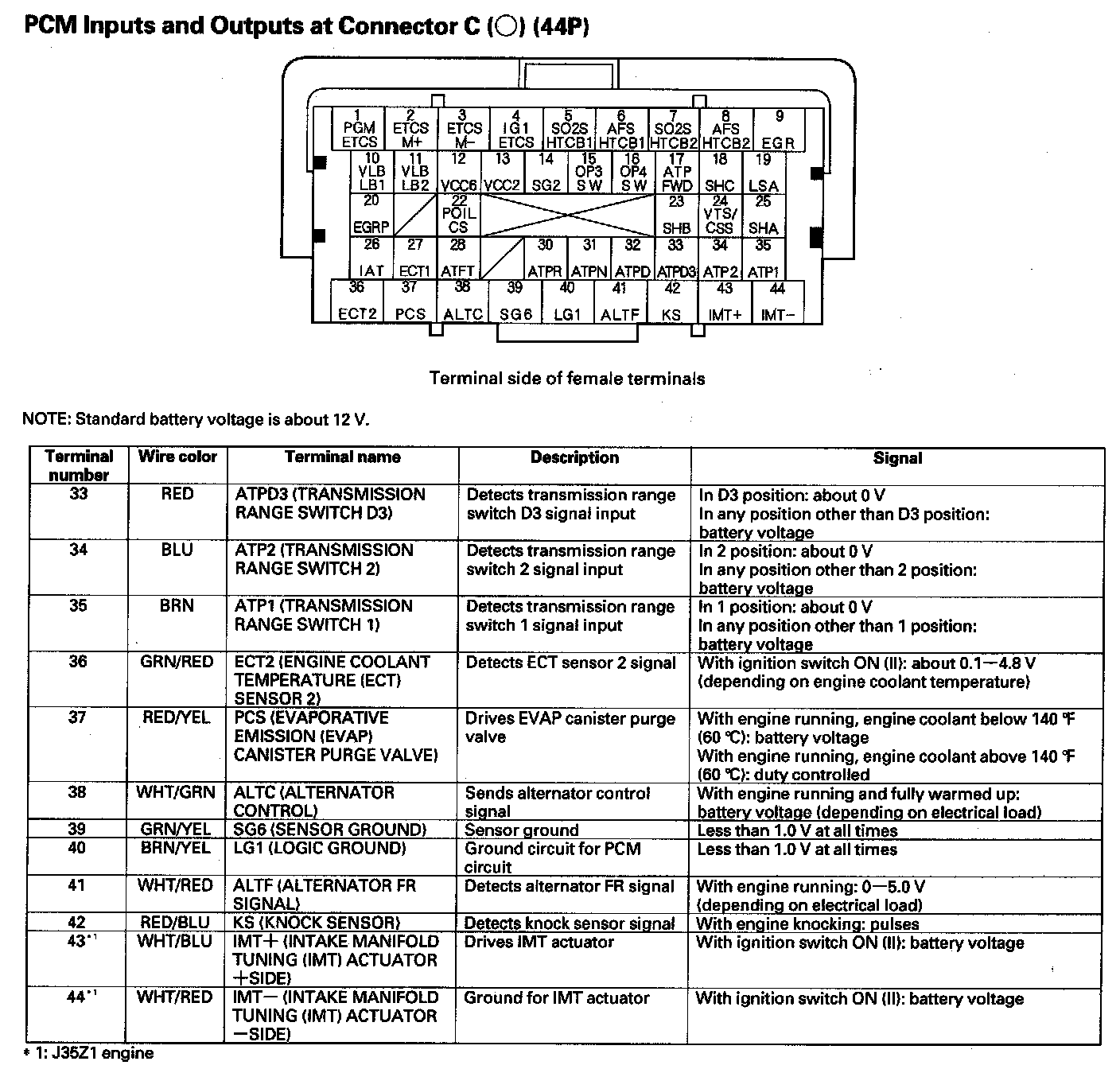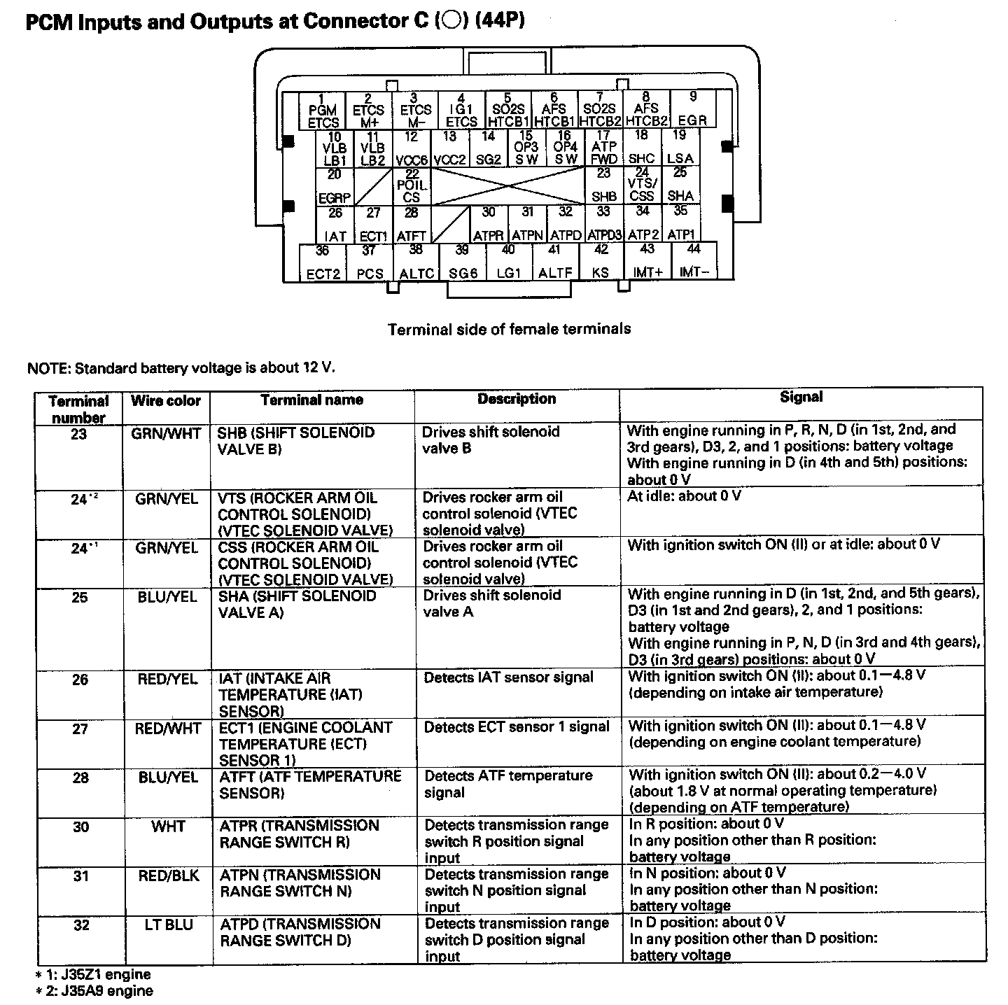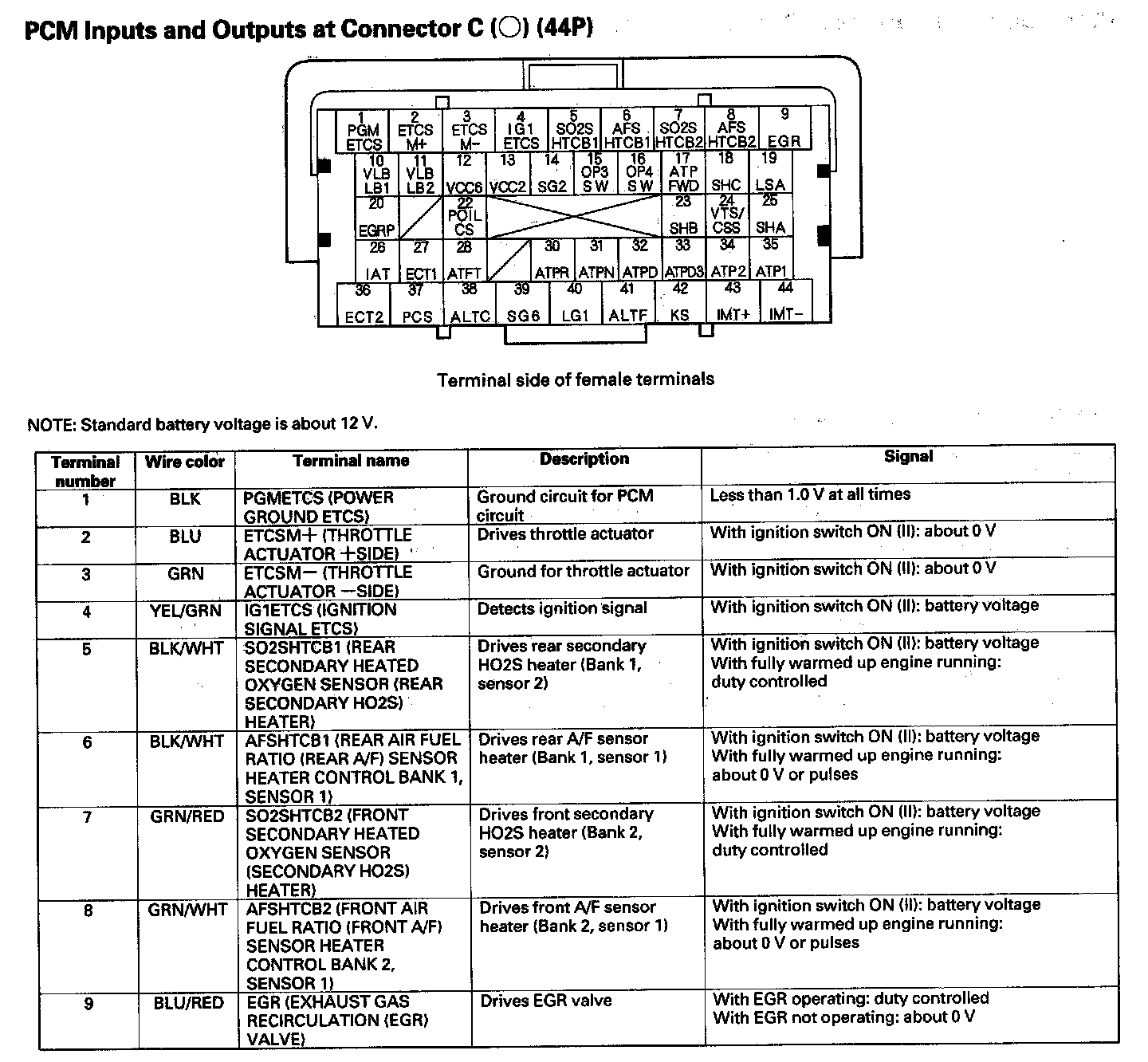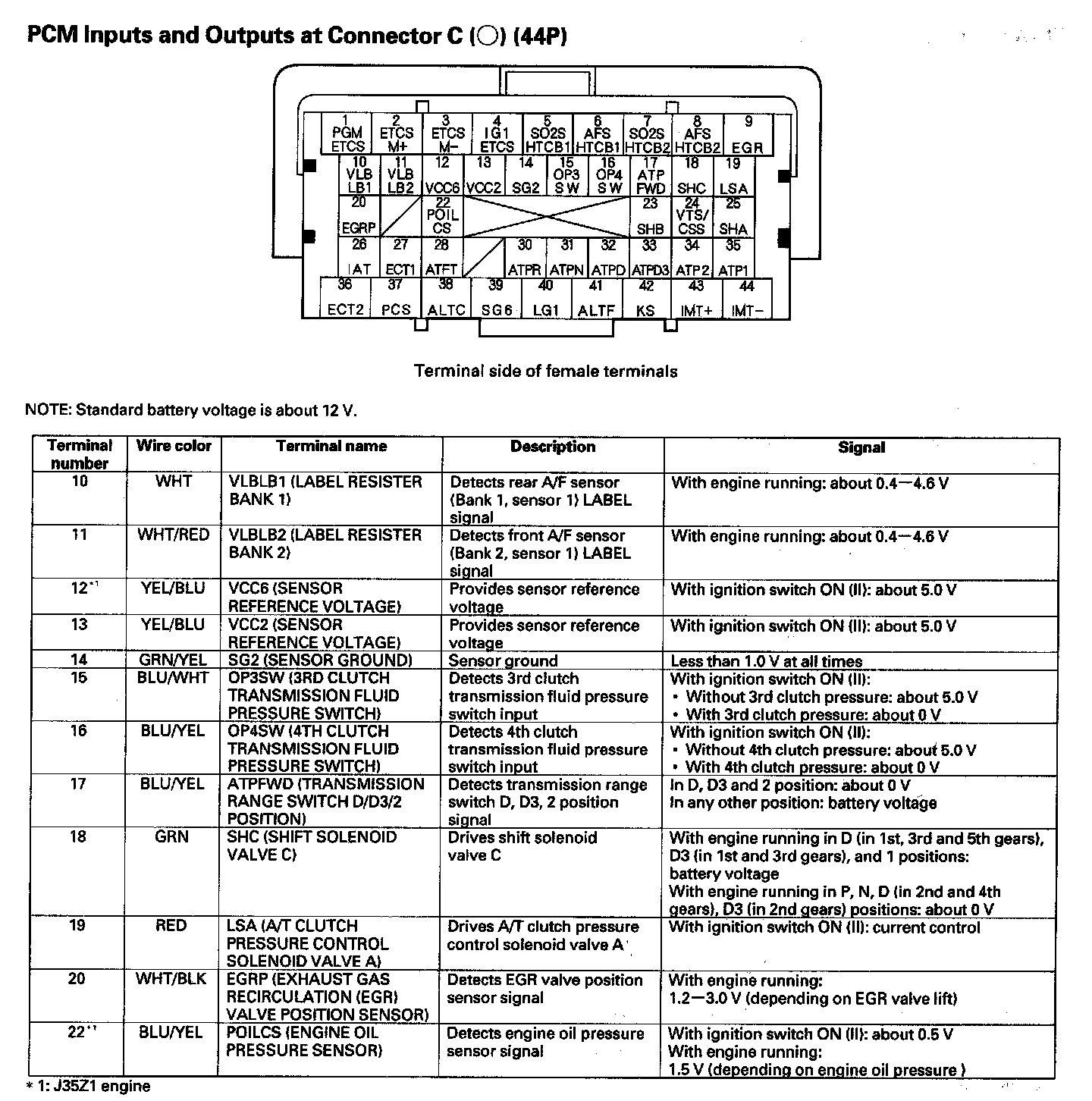 PCM Inputs And Outputs At Connector C (44P) Part 1: