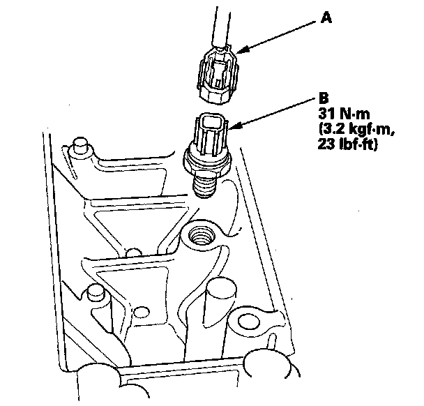 3. Disconnect the knock sensor 1P connector (A), then remove the knock sensor (B).