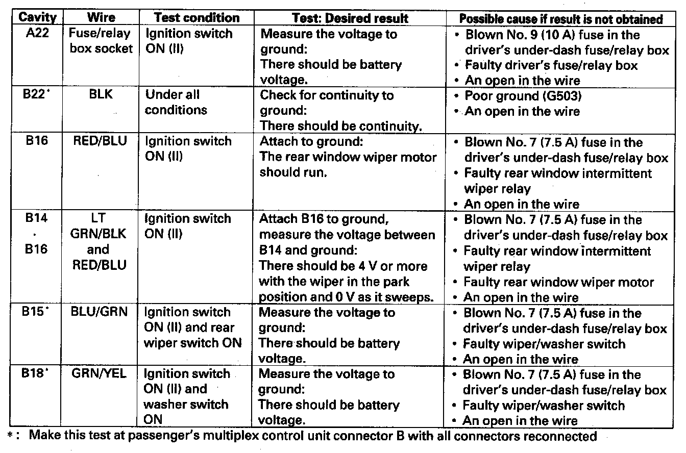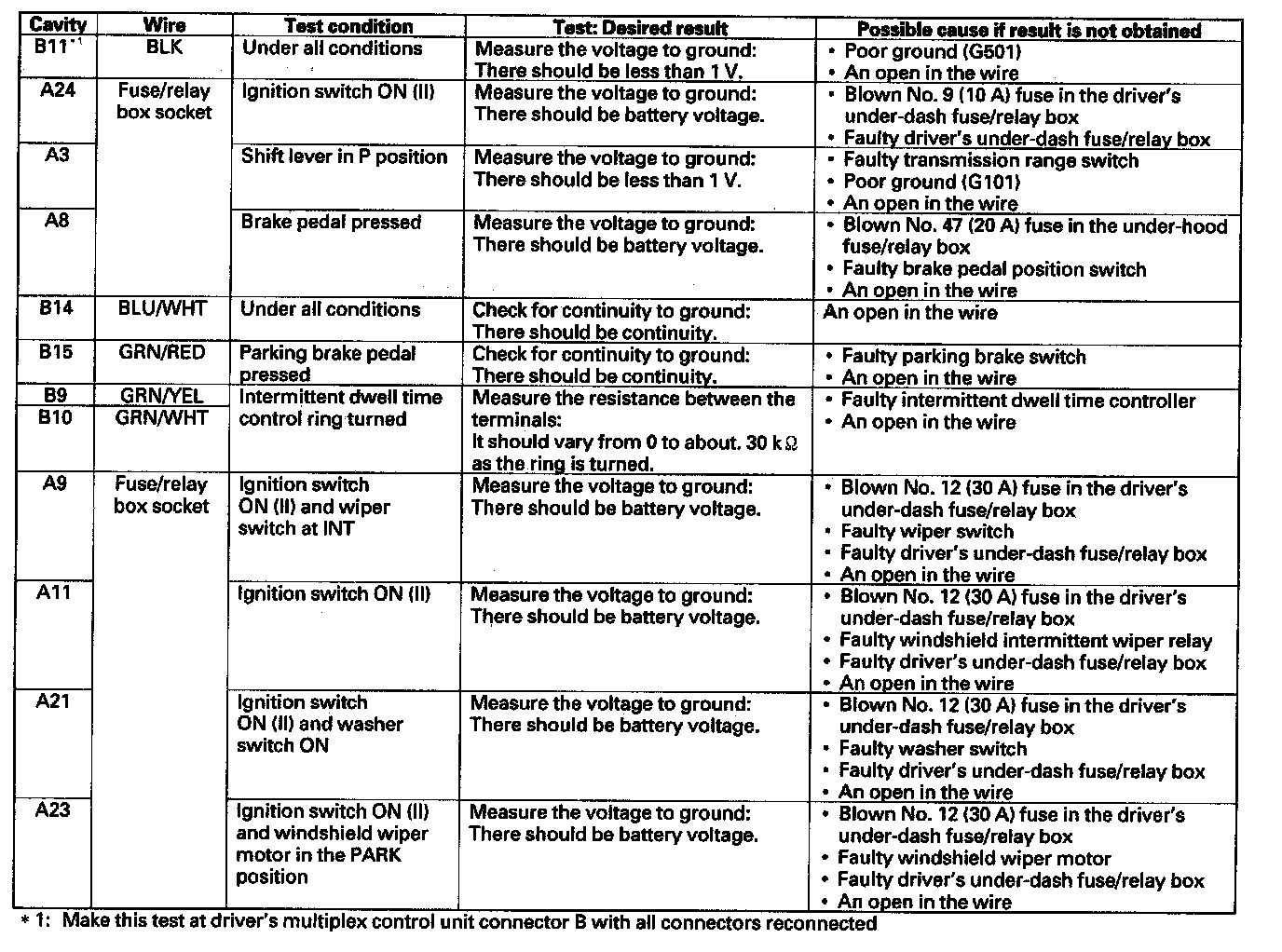 Home >> Honda >> 2008 >> Pilot 2WD V6-3.5L >> Repair and Diagnosis >> Wiper and Washer Systems >> Testing and Inspection >> Control Unit Input Test