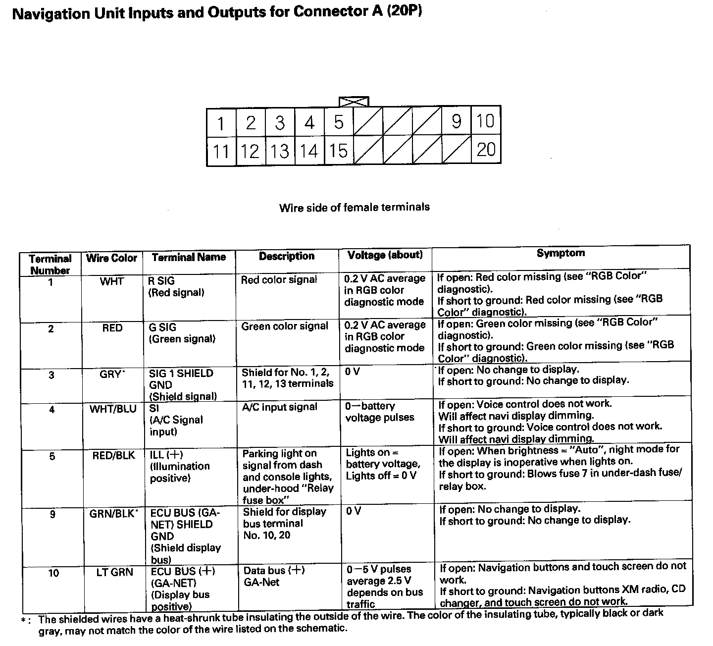 Navigation Unit Inputs And Outputs For Connector A (20P) Part 1: