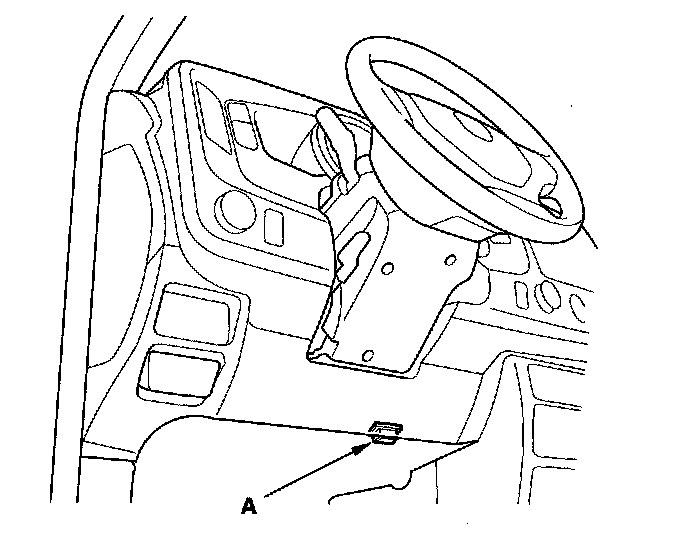 2. Connect the HDS to the DLC (A) located behind the driver's dashboard lower cover.