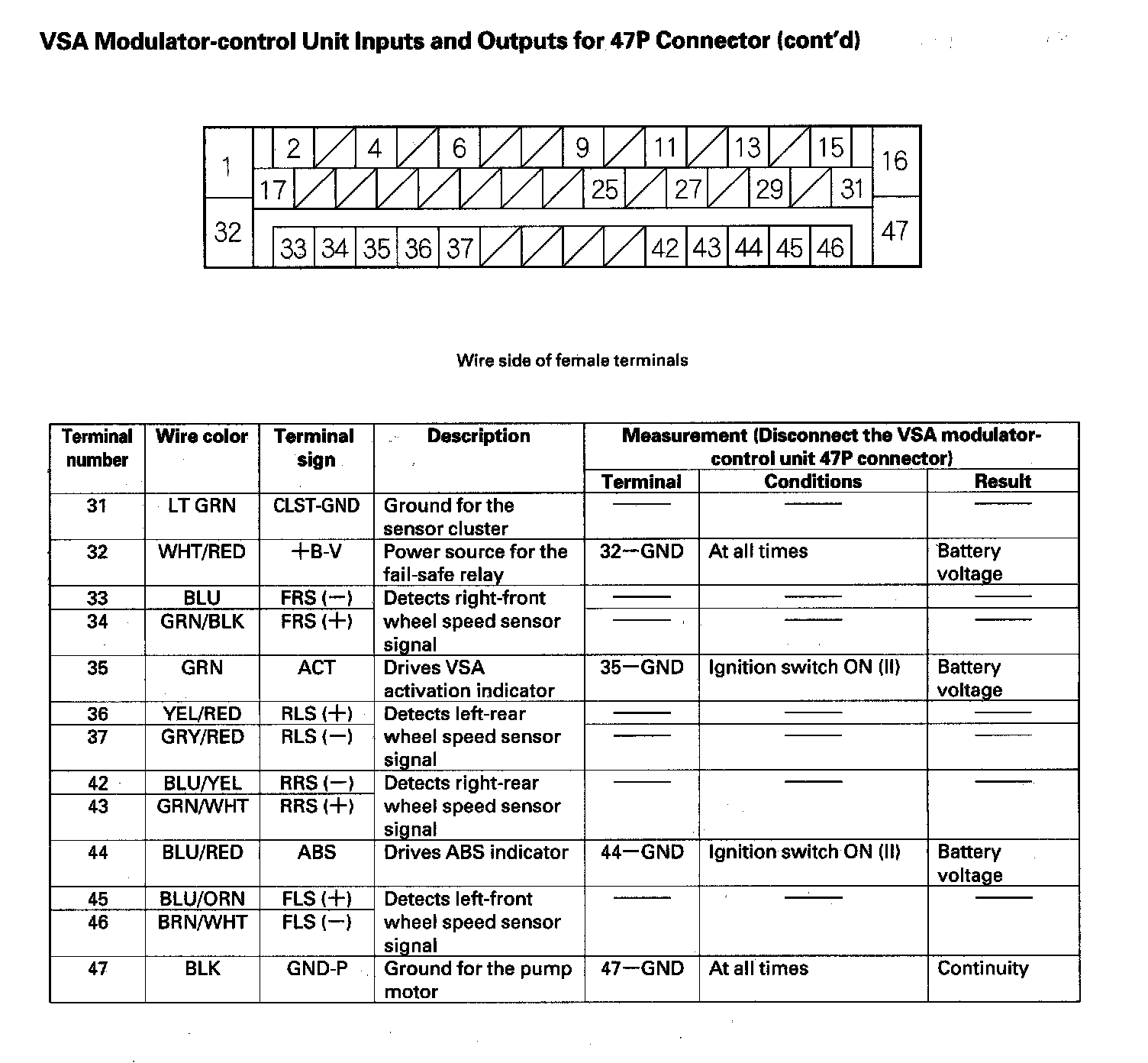 VSA Modulator-control Unit Inputs and Outputs for 47P Connector (Part 1):