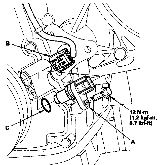 3. Install the parts in the reverse order of removal with a new O-ring (C).