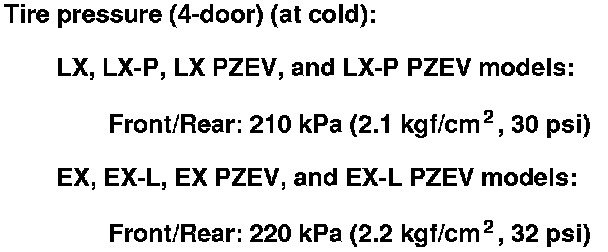 4. Check the tire size and tire pressure.