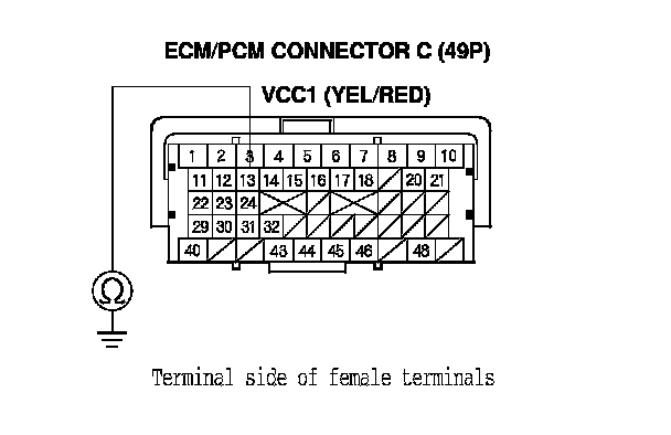 31. Check for continuity between ECM/PCM connector terminal A3 and body ground.
