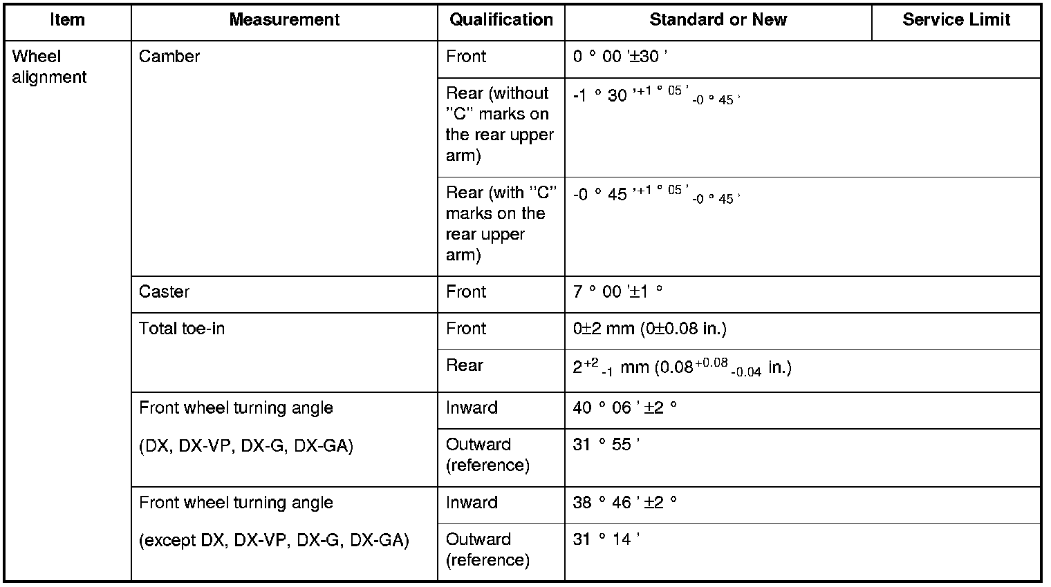 Wheel alignment Specifications