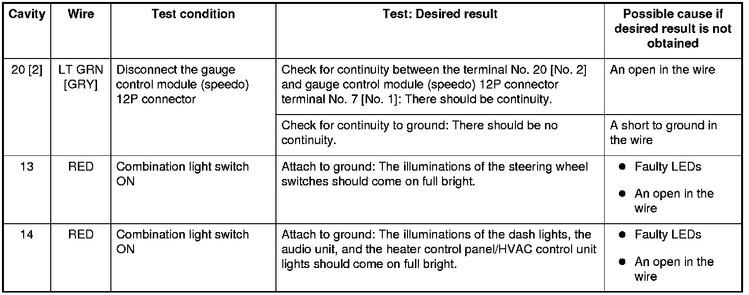 Home >> Honda >> 2009 >> Civic L4-1.8L >> Repair and Diagnosis >> Relays and Modules >> Relays and Modules - Instrument Panel >> Instrument Panel Control Module >> Testing and Inspection >> Gauge Control Module (Tach) Input Test
