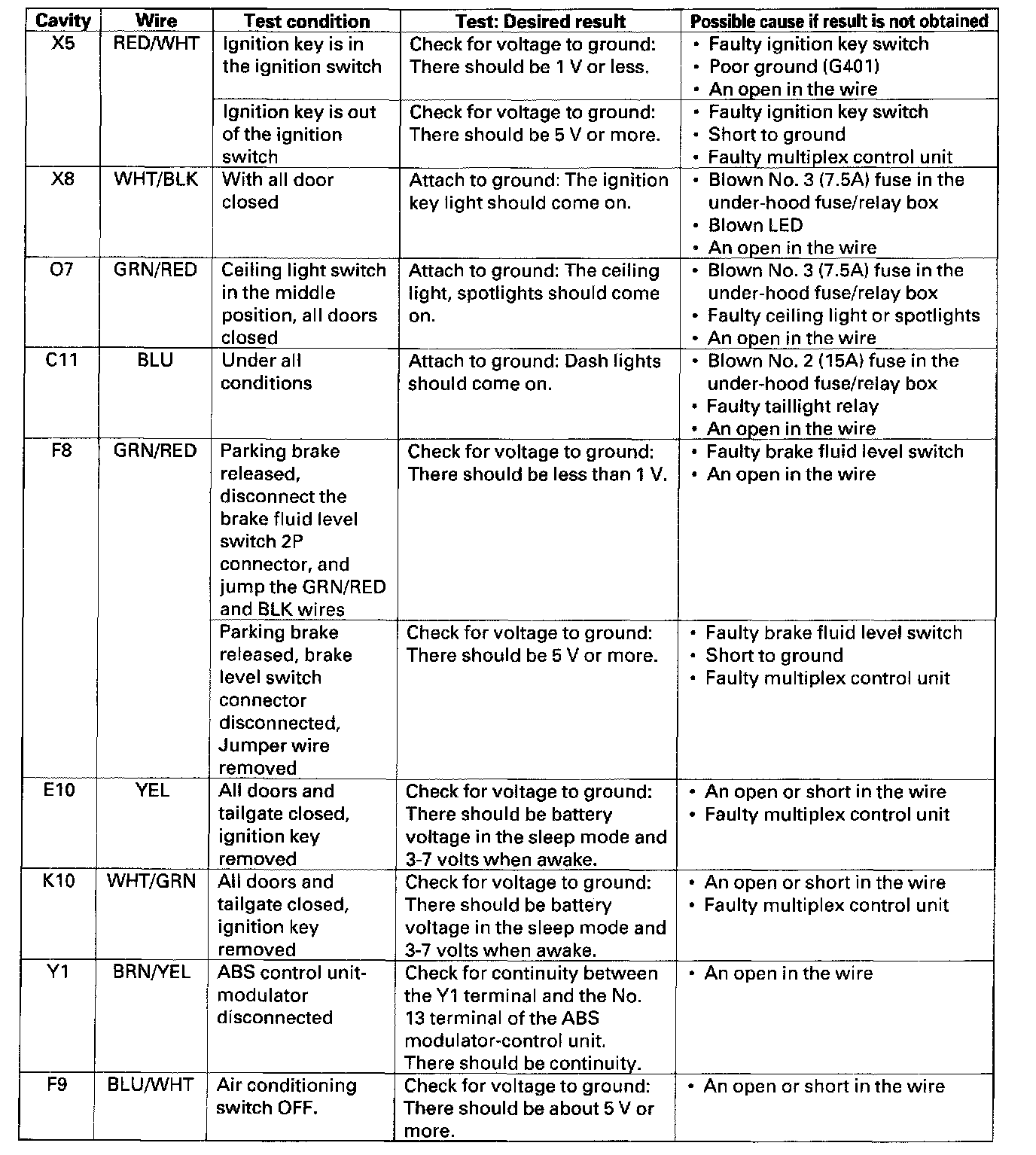 Home >> Honda >> 2009 >> Element 2WD L4-2.4L >> Repair and Diagnosis >> Body and Frame >> Body Control Systems >> Testing and Inspection >> Multiplex Control Unit Input Test