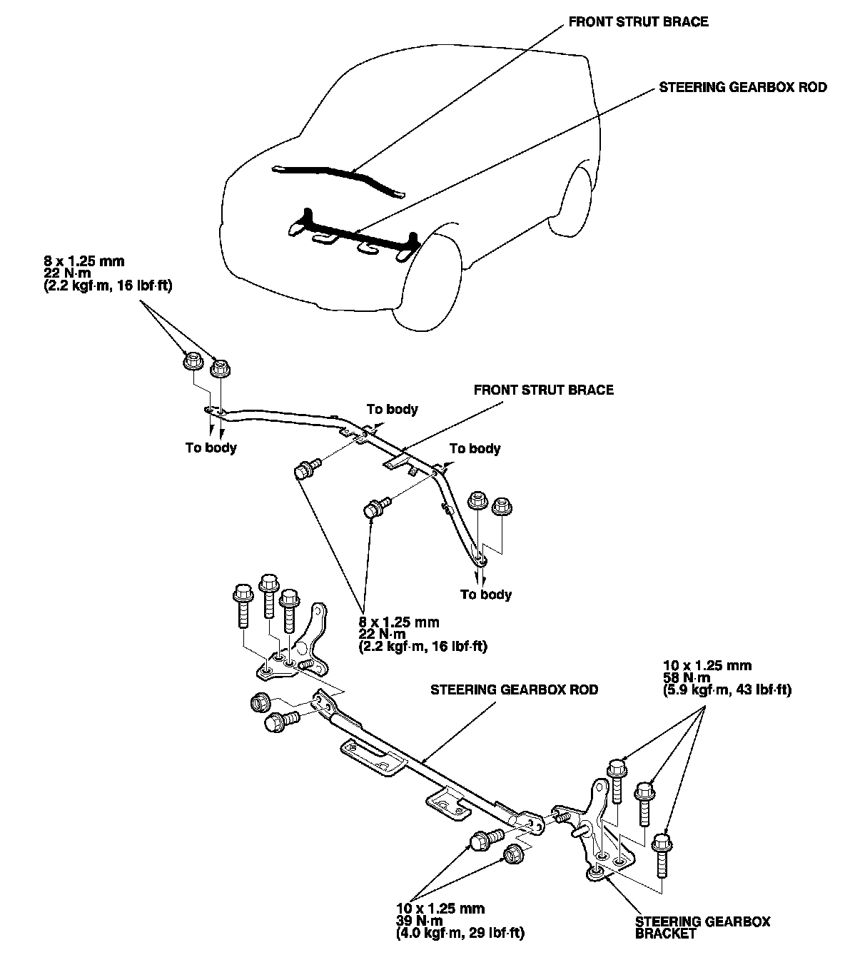 Front strut brace and steering gearbox rod torque