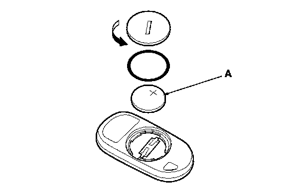 3. Replace the transmitter battery (A) with a new one, and try to lock and unlock the doors with the transmitter by pressing the lock or unlock button five or six times.